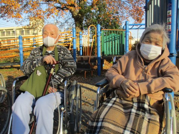 今年の紅葉は例年よりも遅れていたため、例年は11月に行っていた紅葉散歩も今年は12月に行いました。当日は風もなく、穏やかな天候でしたが、やはり12月なので利用者方からは、