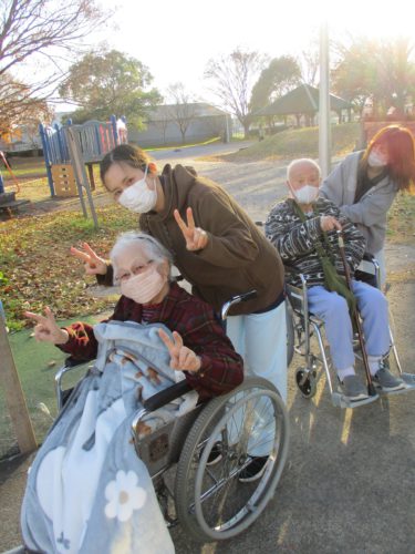 「あ~、寒いねぇ」との声が聞かれる一方、「やっぱり外は良いわ」「気持ちいい」といったお声の方が多く聞かれていました。スタッフも皆様の笑顔が見られ、一緒に嬉しくなりました(^^)/